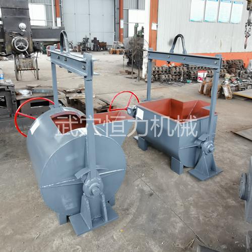 滾筒式澆包:包體為圓桶形,結構為行車懸吊式,配蝸輪蝸桿減速機傳動,轉動靈活自如,雙向回轉,可逆性好。該型澆包特點是澆注包嘴水平高度低,可與地面澆注小車配套使用。